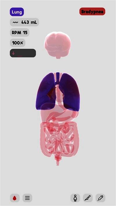 玩家可以观察每个器官内部的具体情况,如心脏抽气、胃酸分泌,甚至膀胱中的尿液情况。器官小组能测量每个器官的医学数据,可从心脏读取心电图,从脑中读取脑电图,为肾功能检查GFR,或检查胃pH值。一切数据均为实时计算,能让玩家看到人体对不同环境的反应。游戏中有200多种药物、激素、食物和饮料可供实验,玩家能选择持续输注、口服药丸和静脉推送等方式,还能像真正的医生一样推开注射器注射。通过游戏了解不同物质的工作原理和人体对它们的反应,大多数激素和药物与体内生物受体相互作用,触发生理效应,玩家可在不断更新的图表中读取每个器官的受体数据。还能看到食物在胃肠道中的消化过程。此外,在急诊室体验时间对于拯救生命的关键作用,使用CPR、去纤颤器等程序创造奇迹。游戏的自定义生理学引擎结合真实的物理模拟,带来有趣且直观的学习体验。