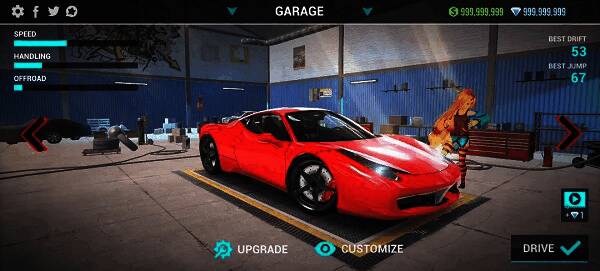 3、游戏内有车库,玩家可收藏赛车,查看性能和外观并进行定制管理。