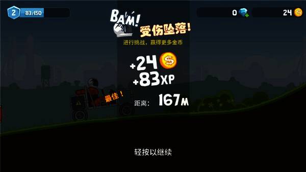 5、抵达终点获金币奖励,用于升级车辆部件应对后续挑战。