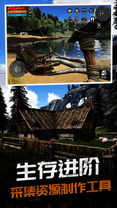刚进入游戏时,左下角虚拟摇杆控制移动,右侧为攻击与背包按钮,滑动屏幕可旋转视角。地图上散落着宝箱,内含木材、蘑菇等物资,及时收集有助于快速起步。背包容量可通过完成每日任务升级扩展,右上角则设有物种图鉴、商店、坐骑及房屋扩建等功能入口,方便随时查阅与使用。