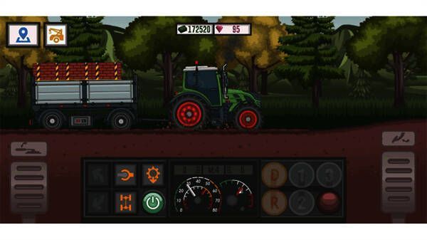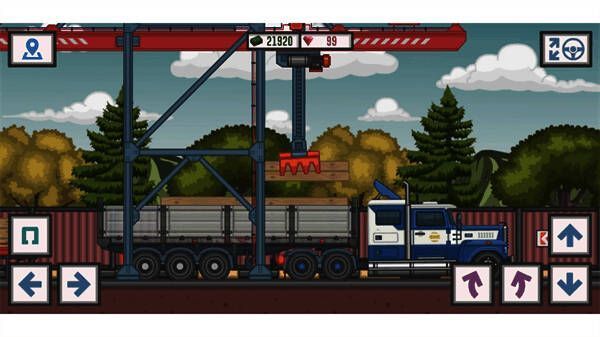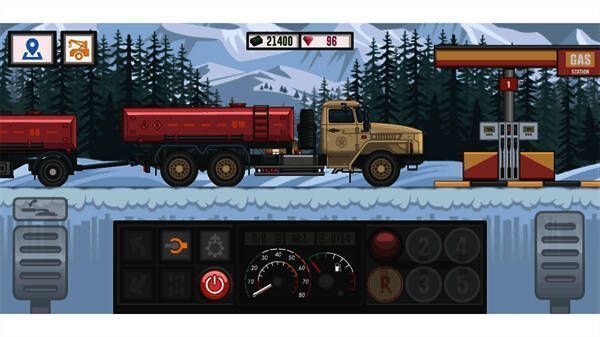 游戏采用2D像素风格结合高清场景细节,营造出城市、乡村与山区等逼真驾驶环境。同时,动态天气与昼夜交替系统进一步增强沉浸感,雨雪、沙尘暴等天气变化会影响驾驶体验,夜间还需使用车灯应对视线限制。