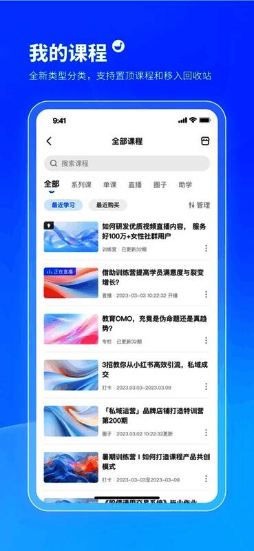 《小鹅通学员版》支持直播互动与日历管理功能,让用户可以自由安排学习时间,轻松掌握课程进度。无论是线上课程还是线下培训,都能通过软件随时查看个人课程表,合理规划学习计划。同时,平台提供大量免费学习资源,涵盖多个领域,满足不同阶段用户的学习需求。