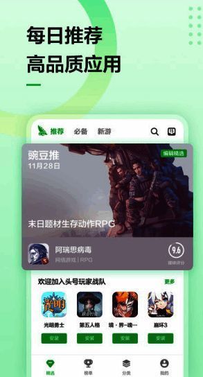 值得一提的是,豌豆荚2025最新版内置了丰富的游戏资源,用户可在游戏中心发现大量热门手游,并获取详尽的游戏攻略与社区互动服务,结识志同道合的游戏爱好者,提升整体娱乐体验。