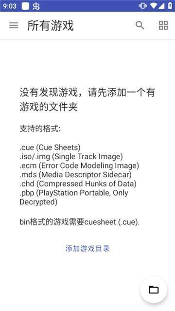 1、在本站下载安装并打开duckstation模拟器,用手柄连接手机设备后,点击左上方三条杠按钮。