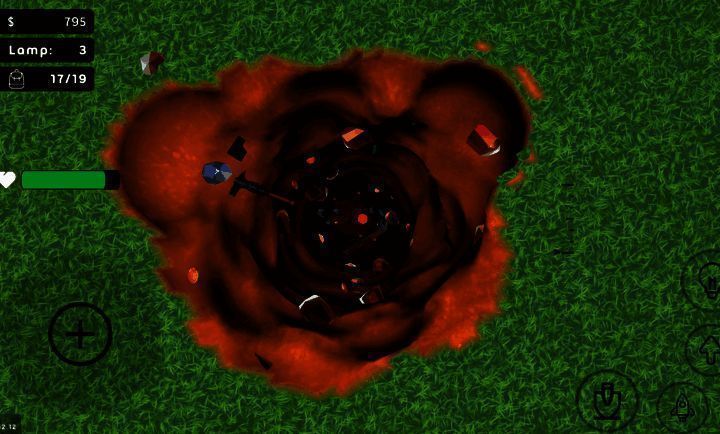 1、进入游戏后,点击左侧控制角色移动,移至中间位置后点击右侧按钮开始挖掘。