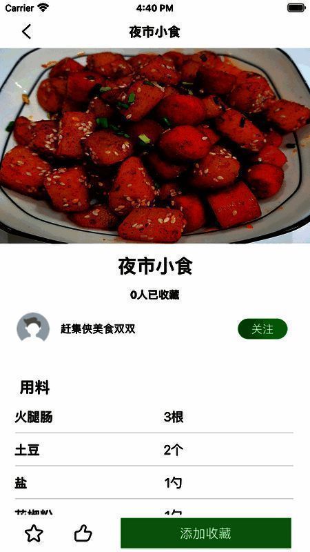 2、可个性化收藏食谱。