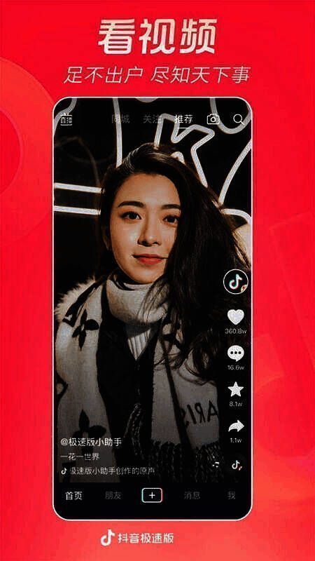 抖音极速版是一款能边刷视频边赚钱的社交短视频平台。它拥有抖音官方最全的视频资源,有超大互动社区,安装包超小。在这里,你能随时记录美好生活,发现生活乐趣并分享。用户可享受明星大咖直播,自由拍照、分享红包,还能解决找工作烦恼。