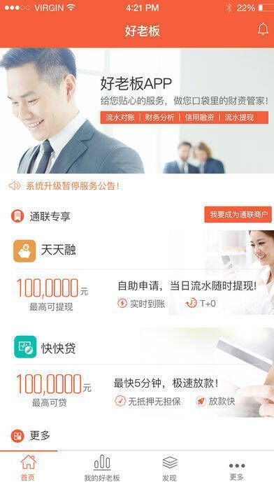 《好老板》是通联支付面向企业打造的一款移动端软件,能为企业提供流水对账、账务管理、数据分析以及信用融资等服务。它有助于用户开展业务分析与对比,为企业发展提供数据支撑,让用户更轻松地管理公司。