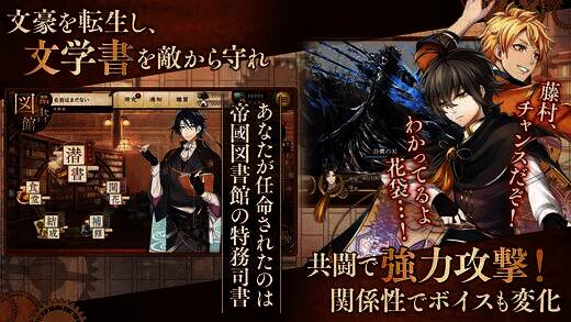 本游戏以文豪收集与养成为主。玩家身为特务司书食堂工作人员,通过“潜书”(即潜入文学书)战斗并收集转世文豪。游戏里能接触到众多近代日本著名文学家,还有豪华声优阵容、精致立绘及BGM。