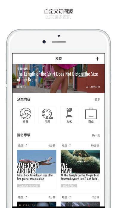4、精选全球前沿的科技、商业、艺术、设计、影视、运动健身及社会流行资讯,可自定义选择优质内容源。