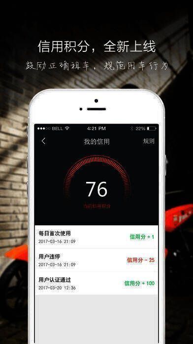 3、完全通过APP控制租车、启动、加锁、还车等操作。