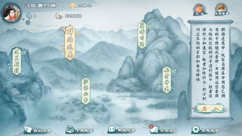沙场怀古是高难度的PVE战斗,胜利后可获得卡牌进阶所需材料。