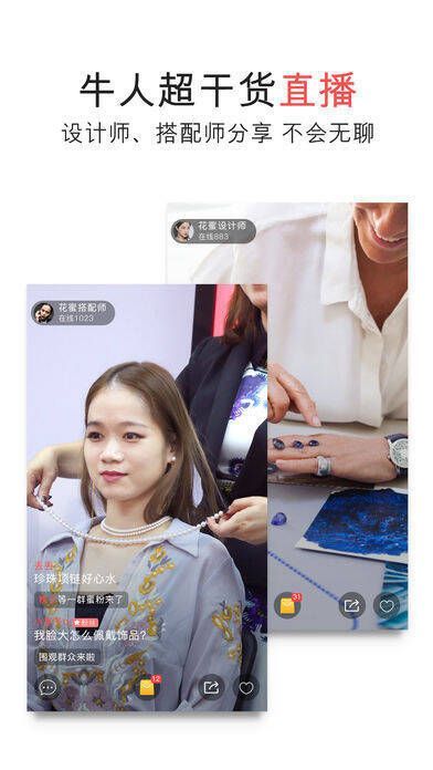 2、【不会无聊的直播】:每场直播都有专业达人分享,探秘珠宝设计制作过程,专业搭配师解读流行单品与搭配法则,互动不停。