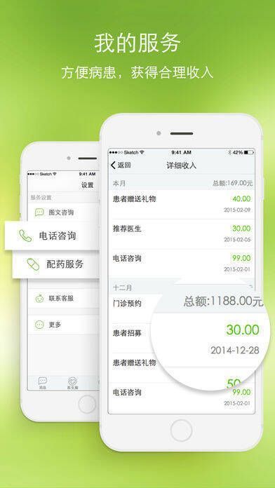 “青苹果在手,病人跟我走”。当病人索要电话号码,您不必再为难,有了青苹果,可随便分发名片,具备图文咨询、免费电话、配药等功能,做好诊后随访还不泄露隐私;门诊挂号费低,医生劳动价值被低估,青苹果让收入自然来,电话咨询、预约加号可自由定价,虚拟礼物“青苹果”让患者感谢成真;能轻松树立个人品牌,每位患者都是积累,会带来更多新患者;医患暴力揪心,青苹果带来温暖沟通,患者都承诺《尊医宣言》。现在下载注册有好礼。