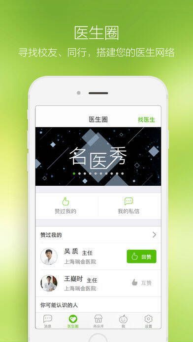 1、为医生搭建交流平台,可找校友和同行交流医学问题;