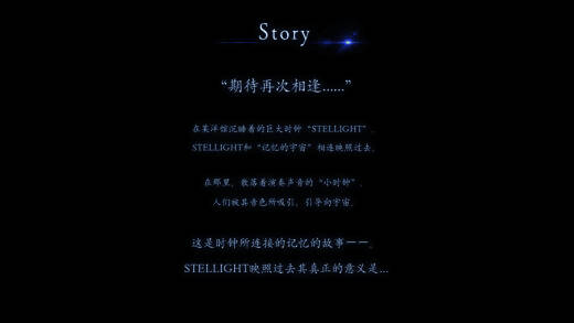 有以Sakuzyo、Kiryu、Powerless为首的豪华作曲家操刀的乐曲,用最美的音乐引领玩家进入“STELLIGHTS”的世界。
