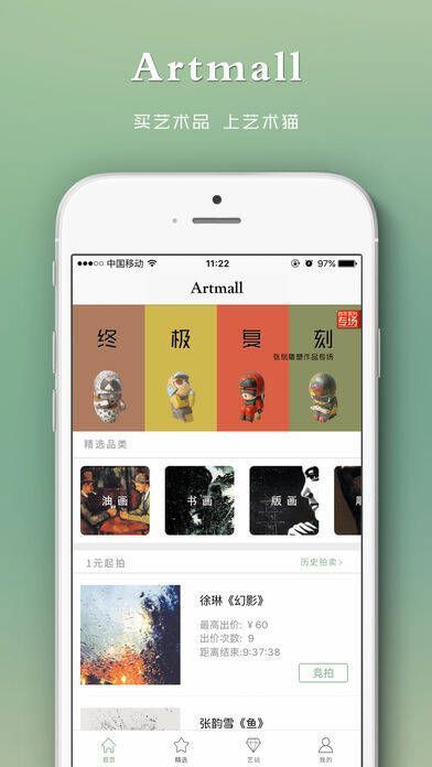 1、Artmall(艺术猫)堪称国内领先的艺术品在线交易与交流平台。