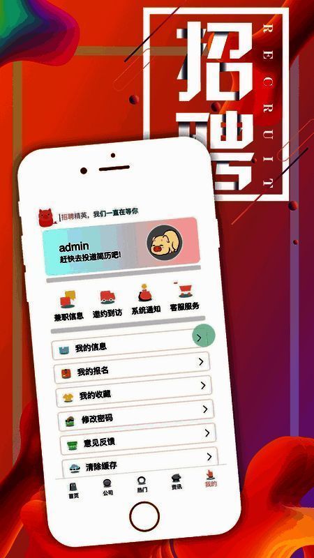 4、个人中心界面具备我的信息查看、报名和收藏记录查看、意见反馈、清除缓存、关于我们、登录注册、修改密码等功能。