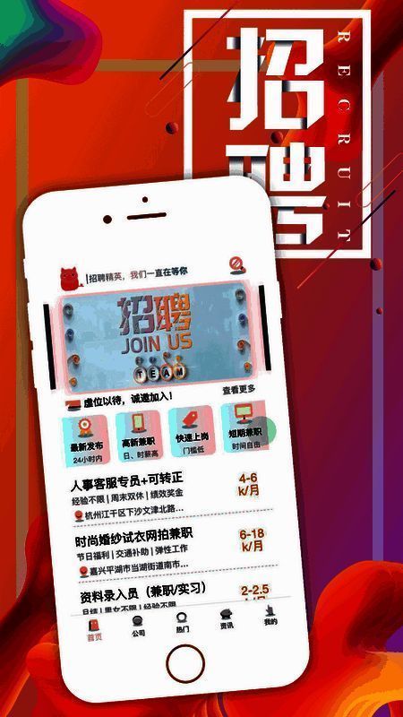 3、包含热门推荐和热门在招职位,以及热门兼职分类和资讯,涵盖兼职介绍和求职注意事项。