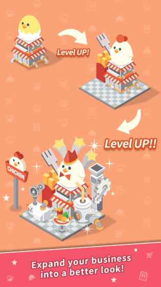 通过提升等级来扩大餐厅规模。自动收集利润,利润增加的同时,餐厅外观会更具魅力!