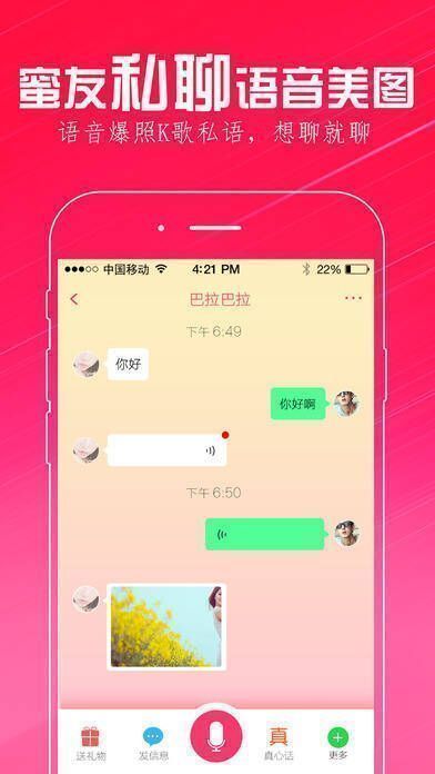 3、【在线聊天】支持视频语音在线交流,聊天交友如同面对面,汇聚了千万真实美女,她们人美声甜,给你一个与女神零距离接触的机会。