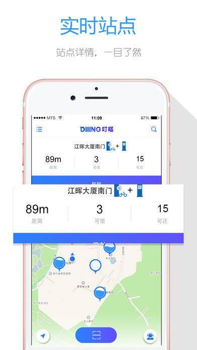 - 支持一键找车,能精准快速定位最近站点。