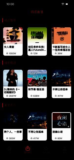 深夜难以入睡且饱受情感困扰,在失败恋情中无法自拔?这款软件有情感电台和音乐电台,可释放压力、寻找答案,还有专家和主播在线分析常见情感问题,看看能否找到你的同款,借鉴他人的开导方式。