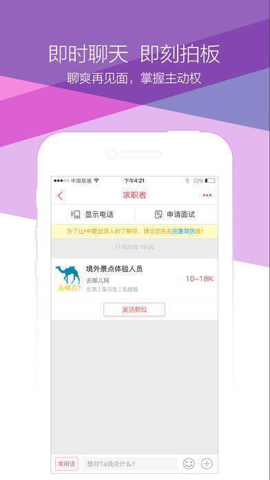 2、直聊:底薪福利、工作职责都能直接聊,不浪费时间在路上。