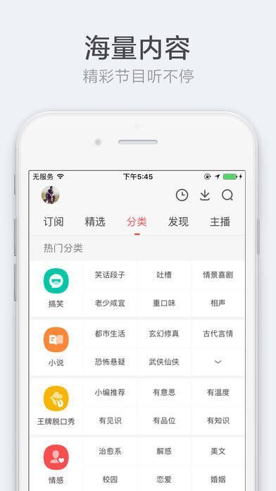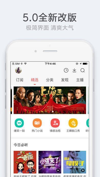 与传统网络电台不同,考拉FM不采用调频直播,而是提供多个录制好音频的电台频道,内容丰富且实时更新,避免节目重复。软件操作简单,令人耳目一新。