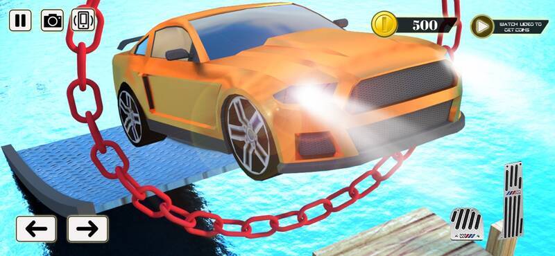 3、在这款夏季水上冲浪游戏中,解锁不同汽车并进行特技表演,操控您的飞车。