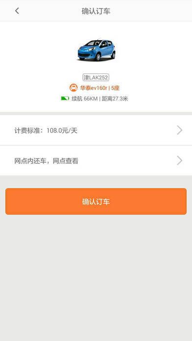 1、打开app就能查找附近租车网点,挑选合适的车辆进行预定下单。