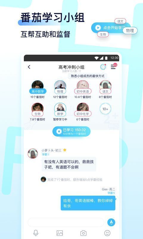 4、参与番茄学习,在学习小组中互助学习、解决问题、相互监督,提升学习效率。