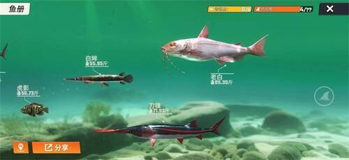3. 丰富鱼类种类,包含常见淡水鱼和稀有深海鱼,等你来挑战。