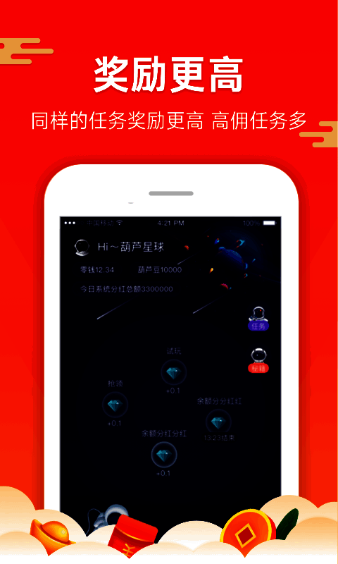 葫芦星球是一款超有趣的手机网赚平台!它提供了大量精彩好玩的任务,用户能轻松完成,按系统要求做完任务就能拿到奖励,奖励多种多样。此外,还能通过邀请好友获取赏金。感兴趣的朋友赶紧下载体验吧!