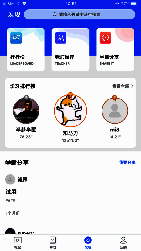 4、学生还能了解每天学习的排行榜信息,在这里可以查询到每个学生的学习情况。