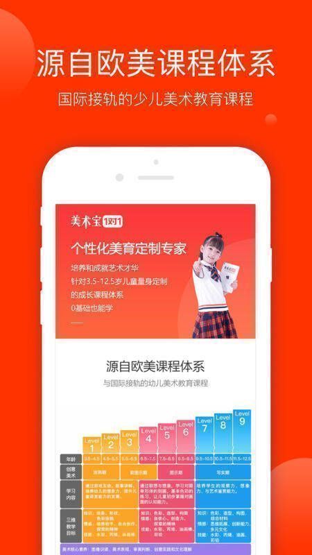 美术宝1对1 app的课程体系以美国国家艺术培养体系K - 12艺术教育体系为根基,融合欧洲艺术教育、教学体系,同时结合中国幼儿特点、21世纪核心素养、美术学科核心素养以及儿童心理、生理、认知、发展、成长等规律共同研发,是与国际接轨的幼儿美术教育课程。