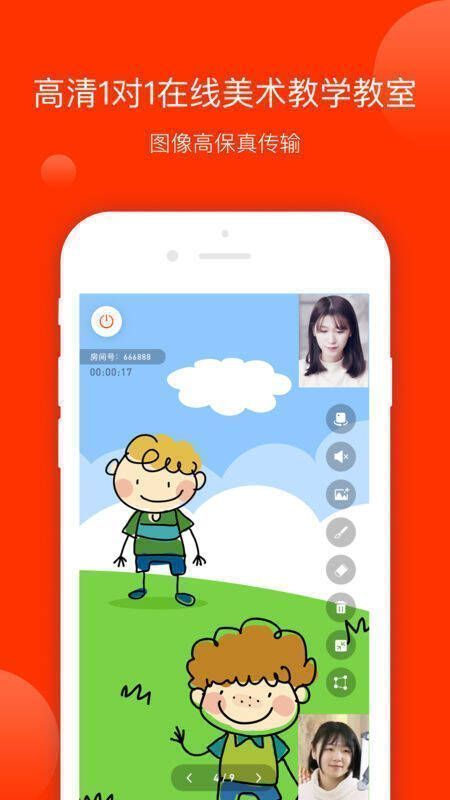 2、课堂教学互动:美术宝1对1 app的美术教师都有多年教学经验,善于引导、启发学生绘画热情,能及时纠正学生练习中的问题,并剖析讲解知识点。