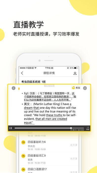 2、回放:直播课程结束后,考前可无限次听回放,APP全屏播放,全视角新感受。