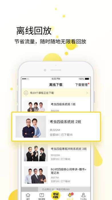 3、下载:可将课程下载到手机,不管在自习室还是图书馆,随时随地都能学,无需担心流量和网络。