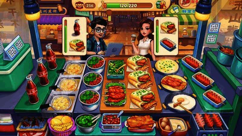 1. 在游戏中,你要在不同地方制作美味菜肴,展示厨艺吸引更多顾客。