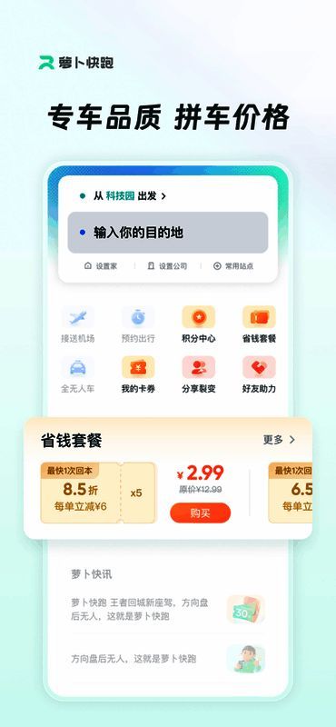 2. 在手机上输入当前位置和目的地,一键即可快速叫车。