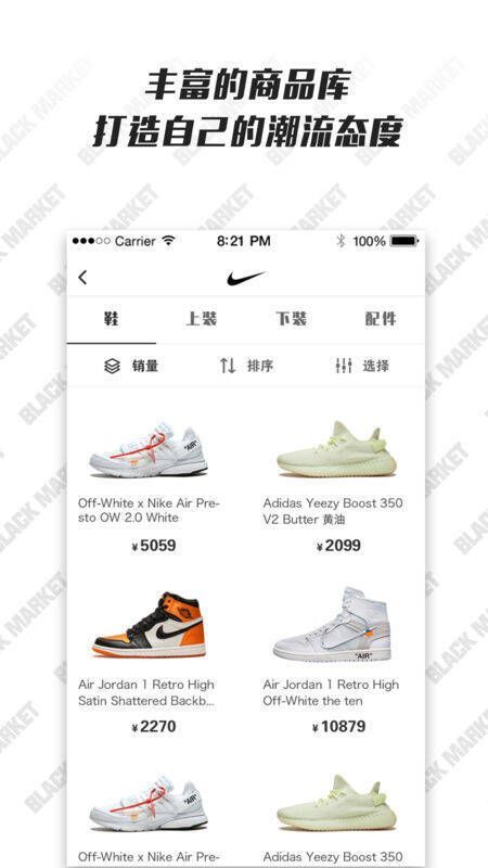 潮流黑市 app 拥有海量时尚潮流商品,你能轻松买到心仪潮品。同时支持二手潮品在线委托寄卖,让闲置的优质潮流服饰重新焕发光彩。它致力于为追求时尚的年轻人打造潮流互联网社区,其特色是将集合竞价概念融入高端限量鞋服,搭建 C2C 在线集合/拍卖平台。
