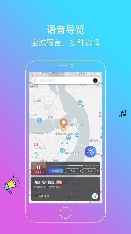 2、语音导览:运用人工智能声纹合成技术,覆盖重庆全城景区,让你在欣赏风景的同时,聆听古今故事。