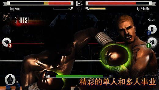 1、出色的画面与音效:由强大的Unreal引擎驱动画面,搭配逼真的动作捕捉动画和精准的声音设计,让玩家深度沉浸于紧张刺激的拳击世界。