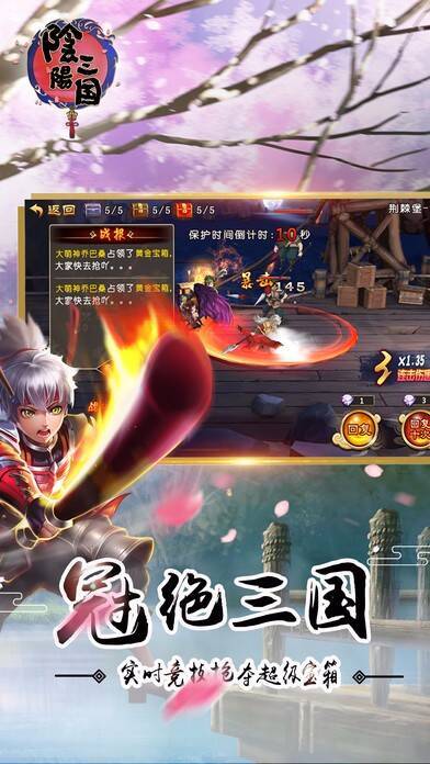 宝箱乱斗是《阴阳三国》的核心玩法之一。游戏按玩家等级划分多个宝箱区域,每天整点在区域内刷新4个黄金宝箱,宝箱内随机有极品武将、武将碎片、装备碎片等。玩家移动到宝箱上占领即可获得资源。游戏还有遭遇战、古战场击杀BOSS等多种不同玩法的PK战斗,包含PVP实时竞技和PVE副本探索玩法,美女战将被暴击后触发的“爆衣”更是一大看点。