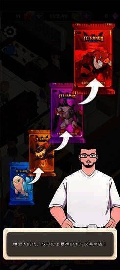 1、库存管理:玩家需管理商店货架,确保各类卡包和卡片供应充足。