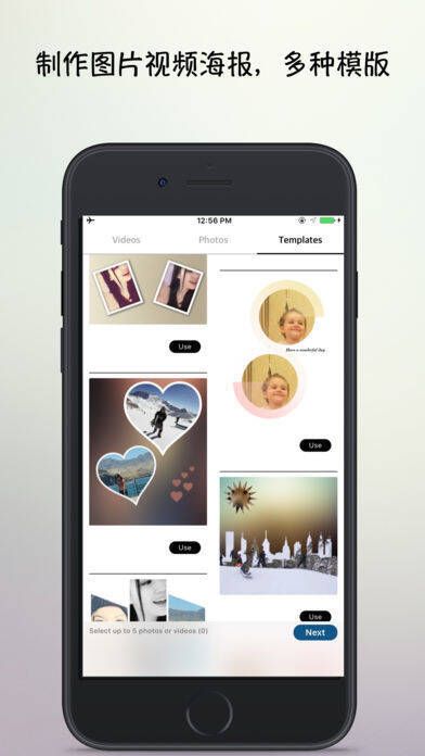 1. 使用海报模板能创造更精美的视频、图片海报,支持live photo。