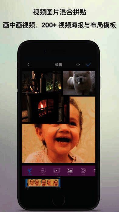 - 视频图片拼贴,多个视频图片合并:有几十种布局可选,图片、视频可一起拼贴,动静结合。