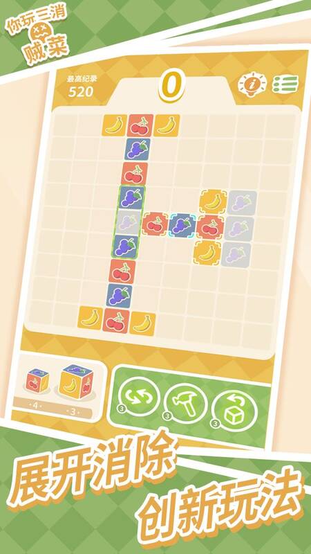《你玩三消贼菜》一款趣味性的休闲闯关游戏,简单的操作模式不仅关卡丰富,而且特效华丽,模式选择多样,随着游戏的进行,难度也会越来越高,然后该游戏易于使用,具有很高的可玩性,您都可以随时随地轻松加入,同时这里还有着对局复盘功能,你可以轻松发现自己的问题哦,感兴趣的下载吧。