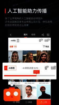 享像派人工智能修图机器人,采用行业领先算法,经数千万专业图片深度学习,进行像素级色彩校正,一键搞定曝光、饱和度等参数调整。平台还有数百家专业修图公司入驻,提供个性化人工修图服务。